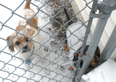 Sasha here. I is still not happy. The snow keeps falling and it is cold and I want to smell the grass again. Mommy found my coat and you can see how happy I am about that. NOT!! Coats mean having to go outside even longer in the snow.